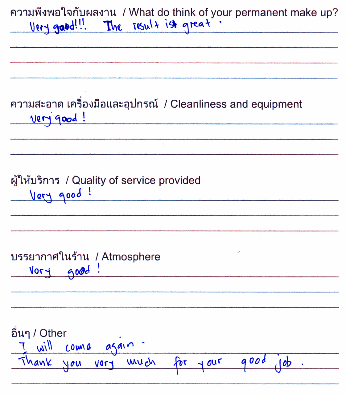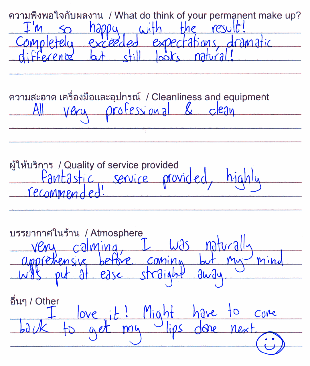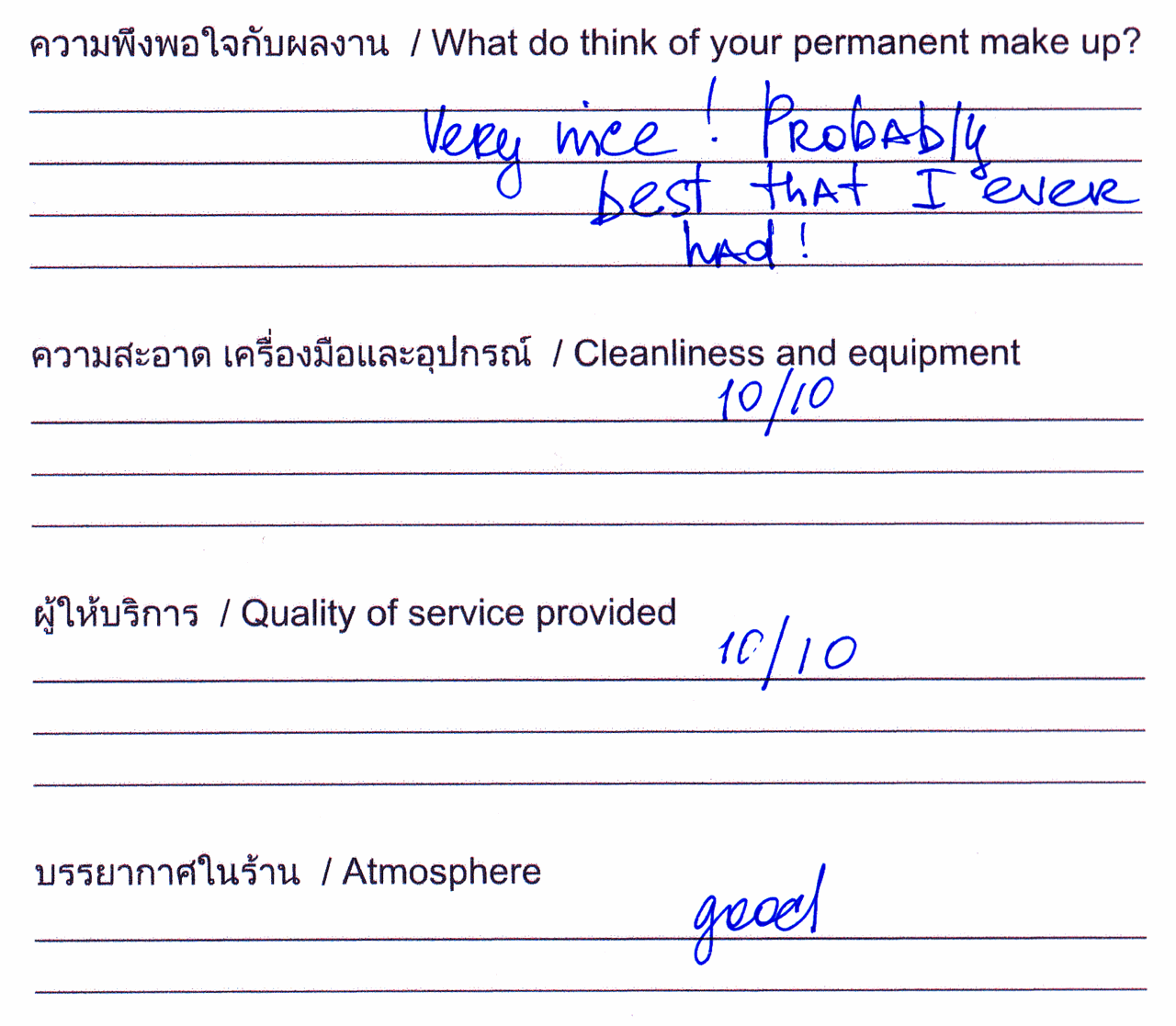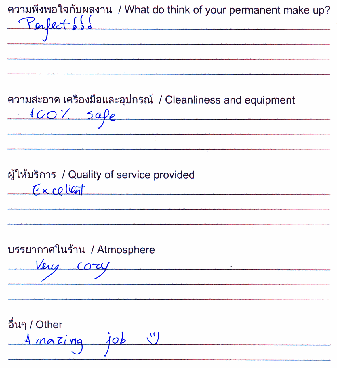 I used to have my lips done at a shop in a Central mall and it was twice as expensive at MonaNisa Beauty so I can compare the quality of service, equipment used and the result from the two shops. The service offered at MonaNisa Beauty was so much better for a lower price. Nisa is very professional, talented and passionate about her work so you feel in good hands. Please be patient if you consider having your lips done, it will take some time for the actual color to appear but when it shows up, you will love it. Many people asked me for the brand of the lipstick I used and I tell them that I didn't put any lipstick because I had a lip tattoo.